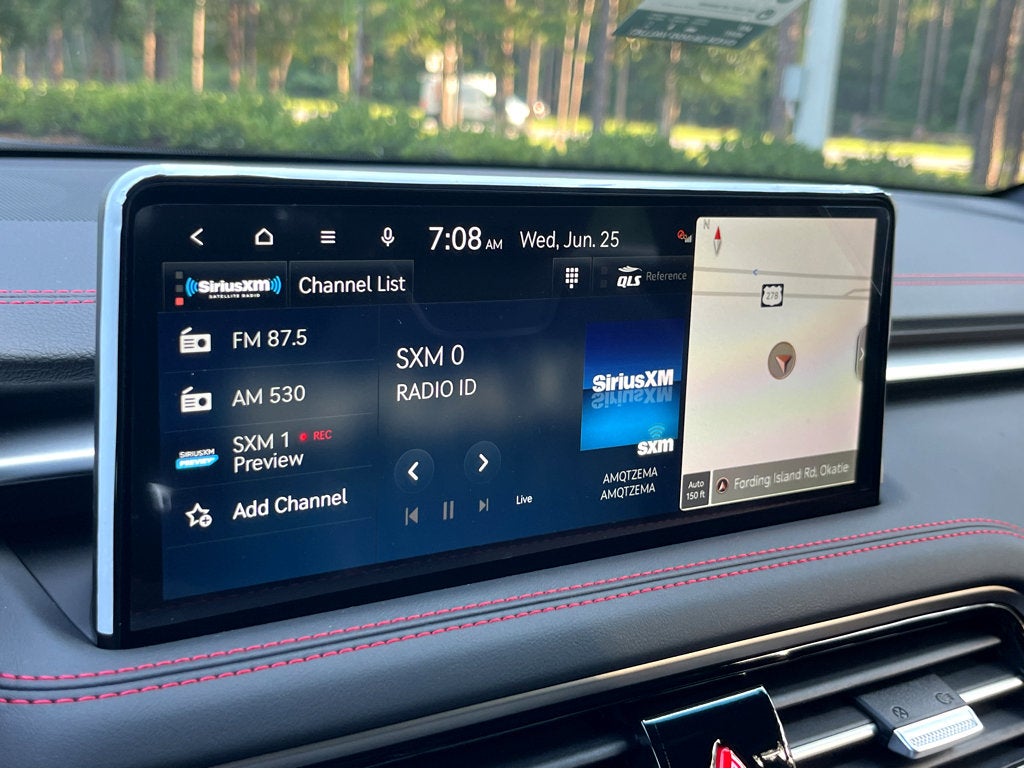 - Radio: AM/FM/HD Lexicon Prem Audio System -inc: QuantumLogic surround sound, 15 high efficiency speakers including 2 subwoofers, Lexicon 11-channel digital external amplifier, speed-sensing, 5th generation navigation system w/10.25" touchscreen, dynamic voice recognition, connected routing, over the air updates, Android Auto and Apple CarPlay, USB connectivity, SiriusXM satellite radio w/90-day trial subscription (not available in Alaska or Hawaii), Genesis connected services, Bluetooth® hands-free phone and audio streaming system
