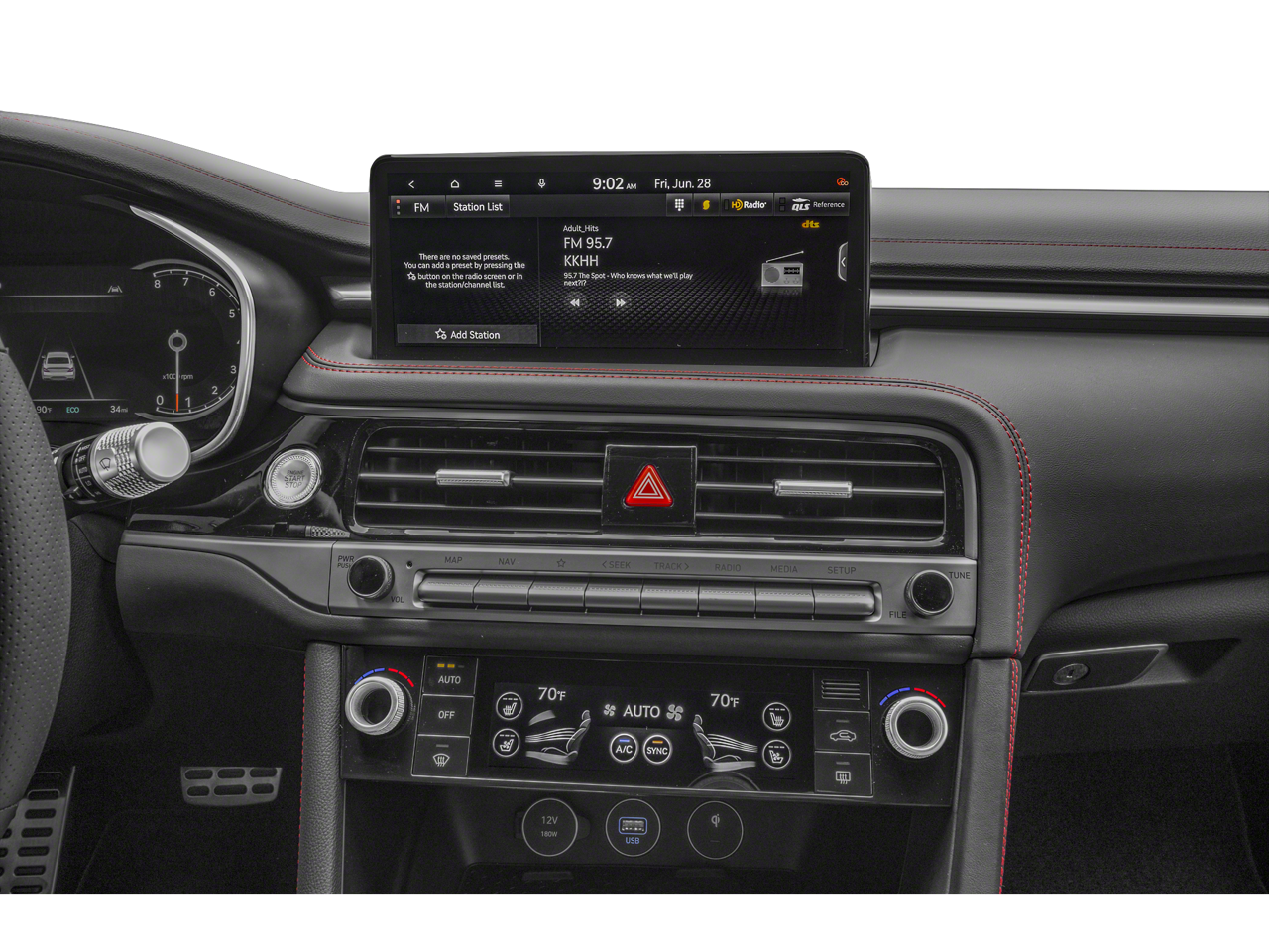 - Radio: AM/FM/HD Lexicon Prem Audio System -inc: QuantumLogic surround sound, 15 high efficiency speakers including 2 subwoofers, Lexicon 11-channel digital external amplifier, speed-sensing, 5th generation navigation system w/10.25" touchscreen, dynamic voice recognition, connected routing, over the air updates, Android Auto and Apple CarPlay, USB connectivity, SiriusXM satellite radio w/90-day trial subscription (not available in Alaska or Hawaii), Genesis connected services, Bluetooth® hands-free phone and audio streaming system