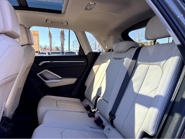 Recent Arrival! Clean CARFAX. Odometer is 20273 miles below market average! 19/27 City/Highway MPGVaden is pleased to offer this Gray Metallic 2020 Audi Q3 Premium with Beige Leather... Beautifully equipped with Convenience Package (Alarm w/Motion Sensor, Audi Advanced Key, Audi Parking System Plus, Audi Side Assist, HomeLink Garage Door Opener, and SiriusXM All Access Service), 10 Speakers, 3.533 Axle Ratio, 4-Wheel Disc Brakes, ABS brakes, Air Conditioning, Alloy wheels, AM/FM radio, Audi Guard Protection Kit, Audi smartphone interface (Apple CarPlay/Android Auto), Auto High-beam Headlights, Automatic temperature control, Brake assist, Bumpers: body-color, Delay-off headlights, Driver door bin, Driver vanity mirror, Dual front impact airbags, Dual front side impact airbags, Electronic Stability Control, Exterior Parking Camera Rear, Four wheel independent suspension, Front anti-roll bar, Front Bucket Seats, Front Center Armrest, Front dual zone A/C, Front fog lights, Front reading lights, Fully automatic headlights, Heated door mirrors, Heated Front Bucket Seats, Heated front seats, Illuminated entry, Knee airbag, Leather Seating Surfaces, Leather Shift Knob, Leather steering wheel, Low tire pressure warning, Occupant sensing airbag, Outside temperature display, Overhead airbag, Overhead console, Panic alarm, Passenger door bin, Passenger vanity mirror, Power door mirrors, Power driver seat, Power Liftgate, Power moonroof, Power steering, Power windows, Radio data system, Radio: Audi Sound System, Rain sensing wipers, Rear air conditioning, Rear anti-roll bar, Rear fog lights, Rear reading lights, Rear seat center armrest, Rear window defroster, Rear window wiper, Remote keyless entry, Speed control, Speed-sensing steering, Split folding rear seat, Spoiler, Steering wheel mounted audio controls, Tachometer, Telescoping steering wheel, Tilt steering wheel, Traction control, Trip computer, Turn signal indicator mirrors, Variably intermittent wipers, and Wheels: 18' 5-Arm Design!Awards:* 2020 KBB.com Best Buy AwardsWhat exactly is the Vaden Way? I think it's best described as a culture bent on treating others with respect, being transparent in how we do business and dedicating ourselves to greater causes like Education and Literacy within our local communities. I hope you'll consider Vaden Automotive when making your next vehicle purchase or choosing where to schedule service and maintenance. Know that when you do, you'll experience firsthand 'The Vaden Way' and forever be part of the Vaden Family. Please visit us on www.vadenofbeaufort.com online, or call us at 843-405-7923!