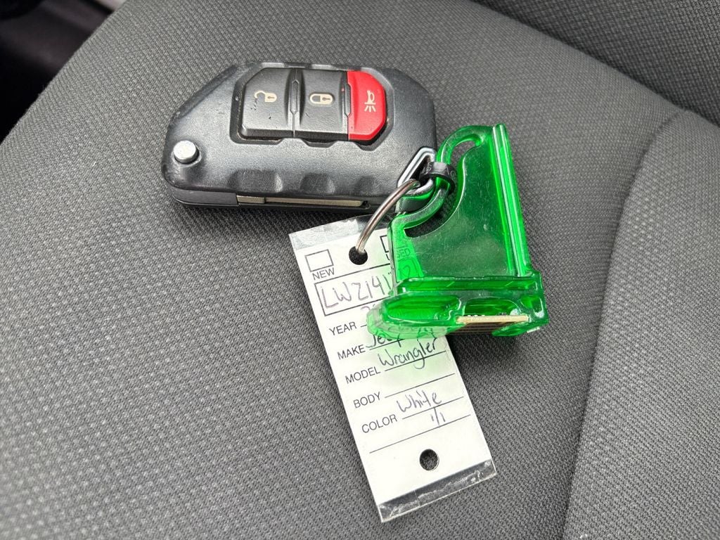 Good News! This certified CARFAX 1-owner vehicle has only had one owner before you. See what's behind you with the back up camera on this unit. Bluetooth® technology is built into the vehicle, keeping your hands on the steering wheel and your focus on the road. When you encounter slick or muddy roads, you can engage the four wheel drive on the Jeep Wrangler and drive with confidence. Set the temperature exactly where you are most comfortable in this unit. The fan speed and temperature will automatically adjust to maintain your preferred zone climate. This model has a 4 Cyl, 2.0L high output engine. This unit embodies class and sophistication with its refined white exterior. With the keyless entry system on this vehicle you can pop the trunk without dropping your bags from the store. It has fog lights for all weather conditions. Enjoy the tried and true gasoline engine in this unit.