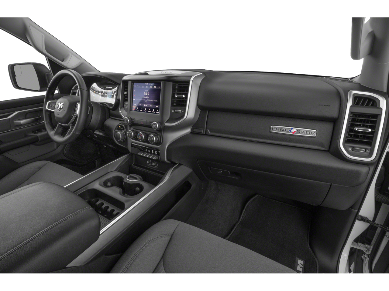 Quick Order Package 23Z Big Horn: Big Horn Badge. Big Horn Level 2 Equipment Group: Uconnect 4 Radio with 8.4" Display; Rear Window Defroster; ParkSense Front/rear Park Assist with Stop; Rear View Auto Dim Mirror; Power Adjustable Pedals; Rear Power Sliding Window; Rear Dome with On/off Switch Lamp; Glove Box Lamp; Power 4-Way Driver Lumbar Adjust; 115V Auxiliary Rear Power Outlet; Power 8-Way Driver Seat; 2 USB Full Function/charge Only Media Hub; Heated Front Seats; Heated Steering Wheel; Foam Bottle Insert (door Trim Panel); Class IV Receiver Hitch; Dampened Tailgate; Security Alarm; Black Premium Power Mirrors; Big Horn Instrument Panel Badge; Remote Start System; SiriusXM Satellite Radio; 400W Inverter; Air Conditioning ATC with Dual Zone Control; 115V Auxiliary Power Outlet; Universal Garage Door Opener; 2nd Row in Floor Storage Bins; Sun Visors with Illuminated Vanity Mirrors. Protection Group: Steering Gear Skid Plate; Tow Hooks; Transfer Case Skid Plate; Front Suspension Skid Plate; Fuel Tank Skid Plate. Deluxe Cloth Bucket Seats. Blind Spot and Cross Path Detection. Anti-Spin Differential Rear Axle. ParkSense Front/rear Park Assist with Stop. 33 Gallon Fuel Tank. Remote Start System. Front and Rear Rubber Floor Mats. 115V Auxiliary Power Outlet. **Equipment listed is based on original vehicle build and subject to change. Please confirm the accuracy of the included equipment by calling the dealer prior to purchase.**