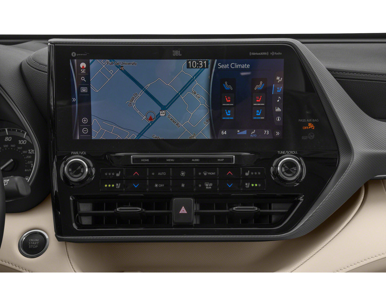 Vaden is pleased to offer this Blizzard Pearl 2020 Toyota Highlander Platinum with Glazed Caramel Leather... Beautifully equipped with 11 Speakers, 20" Painted Alloy Wheels, 3.003 Axle Ratio, 3rd row seats: split-bench, 4-Wheel Disc Brakes, ABS brakes, Air Conditioning, Alloy wheels, AM/FM radio: SiriusXM, Apple CarPlay/Android Auto, Auto High-beam Headlights, Auto-dimming Rear-View mirror, Automatic temperature control, Brake assist, Bumpers: body-color, Delay-off headlights, Driver door bin, Driver vanity mirror, Dual front impact airbags, Dual front side impact airbags, Electronic Rear-View Mirror, Electronic Stability Control, Emergency communication system: Safety Connect with 3-year trial, Four wheel independent suspension, Front anti-roll bar, Front Bucket Seats, Front Center Armrest, Front dual zone A/C, Front fog lights, Front reading lights, Fully automatic headlights, Garage door transmitter: HomeLink, Heads-Up Display, Heated door mirrors, Heated front seats, Heated rear seats, Heated steering wheel, Heated/Ventilated Front Bucket Seats, High Grade LED, Illuminated entry, Knee airbag, Leather Seat Trim, Leather Shift Knob, Low tire pressure warning, Memory seat, Navigation system: Dynamic Navigation with up to 3-year trial, Occupant sensing airbag, Outside temperature display, Overhead airbag, Overhead console, Panic alarm, Panoramic Moonroof, Panoramic View Monitor, Passenger door bin, Passenger vanity mirror, Power door mirrors, Power driver seat, Power Liftgate, Power moonroof, Power passenger seat, Power steering, Power windows, Radio: Premium Audio w/JBL Clari-Fi, Rain sensing wipers, Rear air conditioning, Rear anti-roll bar, Rear reading lights, Rear window defroster, Rear window wiper, Reclining 3rd row seat, Remote keyless entry, Roof rack: rails only, Security system, Speed control, Speed-sensing steering, Split folding rear seat, Spoiler, Steering wheel mounted audio controls, Tachometer, Telescoping steering wheel, Tilt steering wheel, Traction control, Trip computer, Turn signal indicator mirrors, Variably intermittent wipers, and Ventilated front seats! Approved customer communicated additions (repairing minor cosmetic flaw, added accessories, etc.) Prior to delivery will be subject to additional charges. ***All of Our Vaden New Car Pricing is Transparent, the price you see is the price you pay!!**** POWER PACKAGE.