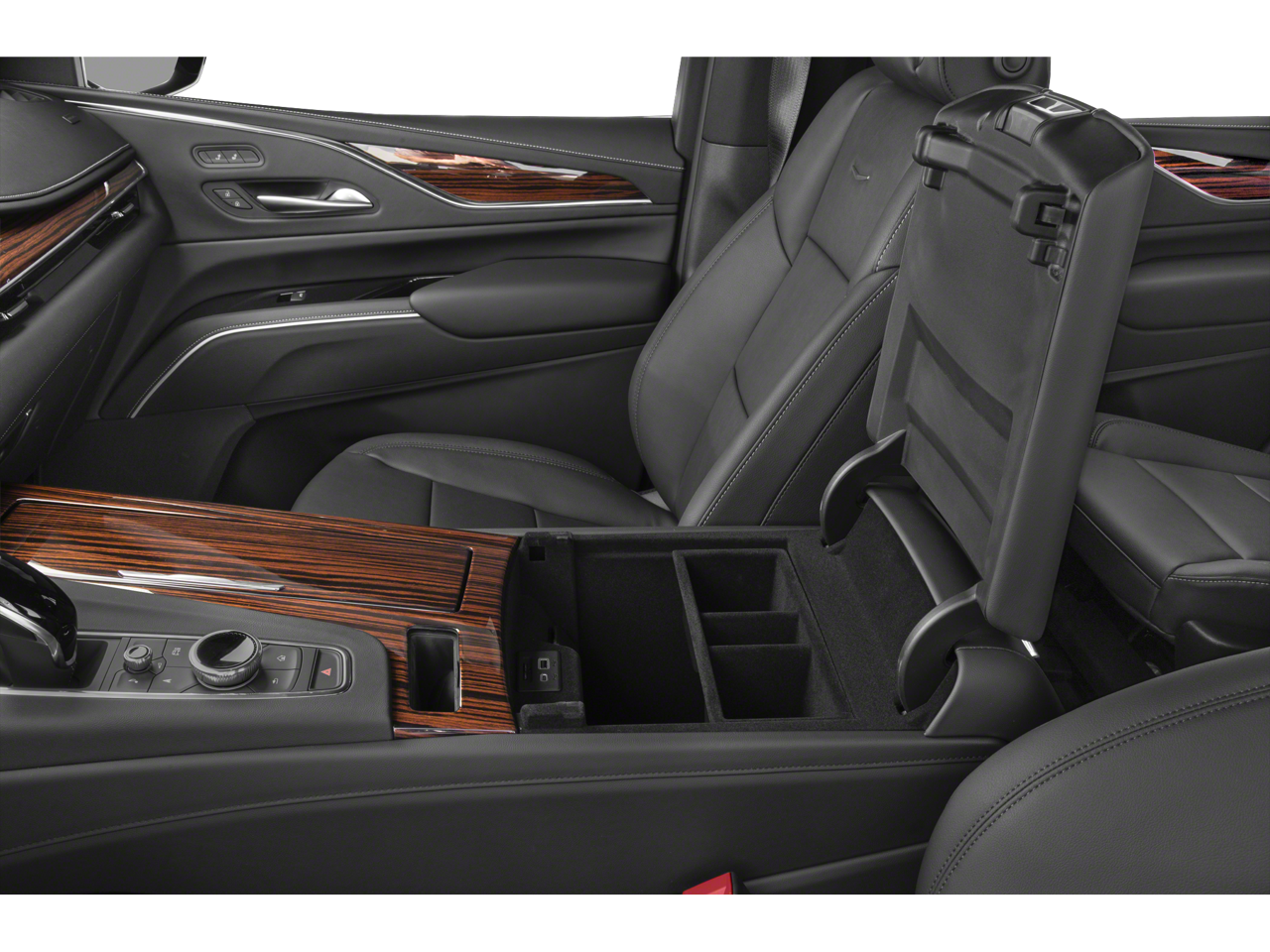 - Console, floor with covered storage, large and small storage bins, dual cup holders, electronic climate controls and second row heated seat controls. Also includes auxiliary power outlet, USB A/C ports and 110-volt outlet (Upgradeable to (DCK) Console refrigerator.)