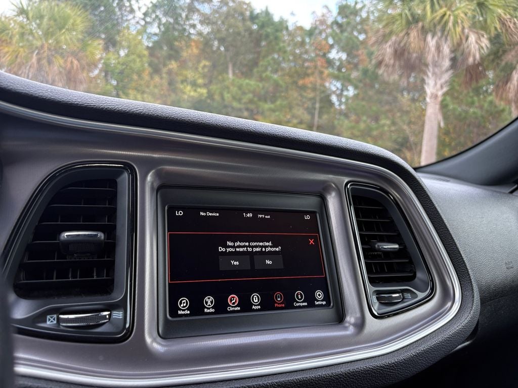 See what's behind you with the back up camera on it. This mid-size car offers Android Auto for seamless smartphone integration. The vehicle offers Automatic Climate Control for personalized comfort. Apple CarPlay: Seamless smartphone integration for this mid-size car - stay connected and entertained on the go! Good News! This certified CARFAX 1-owner vehicle has only had one owner before you. This model features a hands-free Bluetooth® phone system. This Dodge Challenger's blind spot monitor enhances safety. Never get into a cold vehicle again with the remote start feature on this Dodge Challenger. This unit is equipped with the latest generation of XM/Sirius Radio. The satellite radio system in this mid-size car gives you access to hundreds of nation-wide radio stations with a clear digital signal. The state of the art park assist system will guide you easily into any spot. It is rear wheel drive. Set the temperature exactly where you are most comfortable in this vehicle. The fan speed and temperature will automatically adjust to maintain your preferred zone climate.