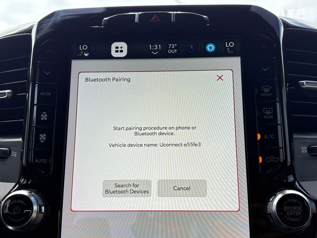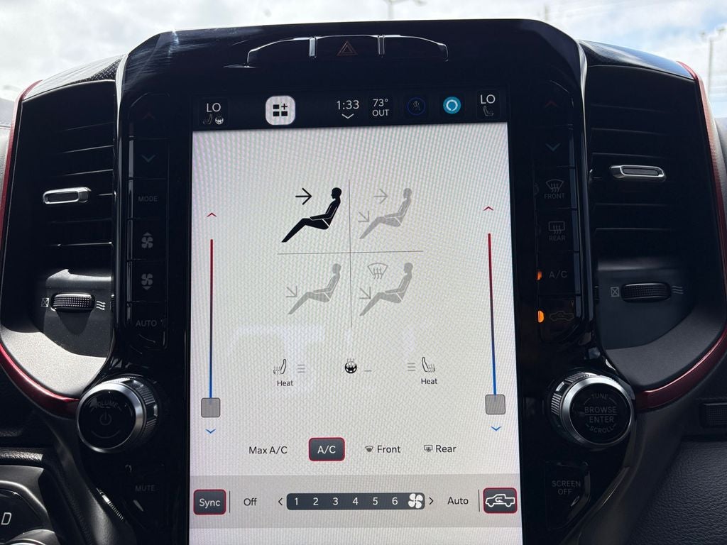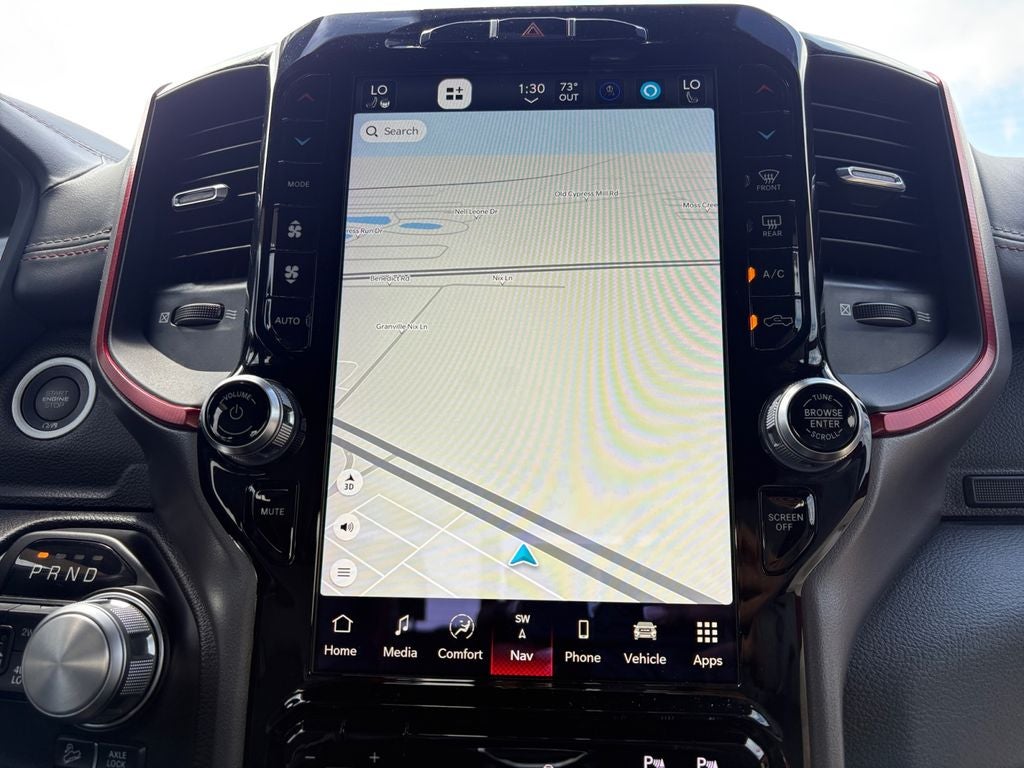 This Ram 1500 comes equipped with Remote Start for convenience on busy mornings and Rear Parking Sensors to make tight spots stress-free. The Off-Road Package elevates capability with off-road-tuned suspension and protective features designed to tackle trails and rough terrain with confidence. Stay connected on every drive via Android Auto and Hands-Free Bluetooth®, keeping navigation, calls, and music accessible and safe.