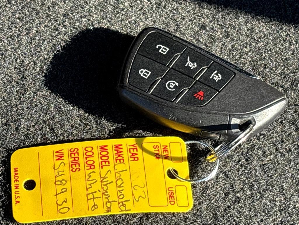 Vaden is pleased to offer this Summit White 2023 Chevrolet Suburban Premier with Jet Black Leather... Beautifully equipped with Preferred Equipment Group 1LZ (1st & 2nd Row Color-Keyed Carpeted Floor Mats, 3rd Row 60/40 Power-Folding Split-Bench, Auto-Dimming Inside Rear-View Mirror, Bose 10-Speaker Surround w/CenterPoint, Bright Front & Rear Door Sill Plates, Chrome Door Handles w/Body-Color Strip, Chrome Mirror Caps, Color-Keyed Carpeting Floor Covering, Driver & Front Outboard Passenger Airbags, Dual Exhaust System, Enhanced Driver Information Center, Floor Console, Hands-Free Rear Power Programmable Liftgate, Heated & Ventilated Driver & Front Passenger Seats, Heated 2nd Row Outboard Seats, Heated Driver & Front Passenger Seats, Heated Steering Wheel, Infotainment Display, Lane Change Alert w/Side Blind Zone Alert, LED Daytime Running Lamps, Memory Settings, Outside Heated Power-Adjustable Mirrors, Power Release 2nd Row Bucket Seats, Power Tilt & Telescopic Steering Column, Rear Cross Traffic Alert, Remote Start, Safety Alert Seat, SiriusXM Radio w/360L, Universal Home Remote, Wireless Charging, and Wrapped Steering Wheel), 10 Speakers, 20" x 9" Polished Aluminum Wheels, 3.23 Rear Axle Ratio, 3rd row seats: split-bench, 4-Wheel Disc Brakes, ABS brakes, Adaptive suspension, Air Conditioning, Alloy wheels, AM/FM radio: SiriusXM with 360L, Apple CarPlay/Android Auto, Auto High-beam Headlights, Auto-dimming door mirrors, Auto-dimming Rear-View mirror, Auto-leveling suspension, Automatic temperature control, Brake assist, Bumpers: body-color, Compass, Delay-off headlights, Deleted 3 Years of Remote Access, Driver door bin, Driver vanity mirror, Dual front impact airbags, Dual front side impact airbags, Electronic Stability Control, Emergency communication system: OnStar and Chevrolet connected services capable, Four wheel independent suspension, Front anti-roll bar, Front Bucket Seats, Front Center Armrest, Front dual zone A/C, Front reading lights, Fully automatic headlights, Garage door transmitter, Heated door mirrors, Heated front seats, Heated rear seats, Heated steering wheel, Illuminated entry, Low tire pressure warning, Magnetic Ride Control Suspension, Memory seat, Navigation System, Occupant sensing airbag, Outside temperature display, Overhead airbag, Overhead console, Panic alarm, Passenger door bin, Passenger vanity mirror, Perforated Leather Seating Surfaces, Power door mirrors, Power driver seat, Power Liftgate, Power passenger seat, Power steering, Power windows, Premium audio system: Chevrolet Infotainment 3 Premium, Radio: Chevrolet Infotainment 3 Premium System, Rain sensing wipers, Rear air conditioning, Rear anti-roll bar, Rear reading lights, Rear window defroster, Rear window wiper, Remote keyless entry, Roof rack: rails only, Security system, Speed control, Speed-sensing steering, Split folding rear seat, Spoiler, Steering wheel memory, Steering wheel mounted audio controls, Tachometer, Telescoping steering wheel, Tilt steering wheel, Traction control, Trip computer, Turn signal indicator mirrors, Variably intermittent wipers, Ventilated front seats, and Voltmeter! APPLE CAR PLAY - ANDROID CAR, Bluetooth®, NAVIGATION SYSTEM NAV GPS, BACKUP CAMERA, SOUND PACKAGE - SIRIUS XM SATELLITE RADIO, LEATHER SEATS, REMOTE START, POWER PACKAGE, CLIMATE PACKAGE, REAR CLIMATE PACKAGE, HEAT PACKAGE, POWER MIRROR PACKAGE, MEMORY PACKAGE, TOW PACKAGE TRAILER PACKAGE.