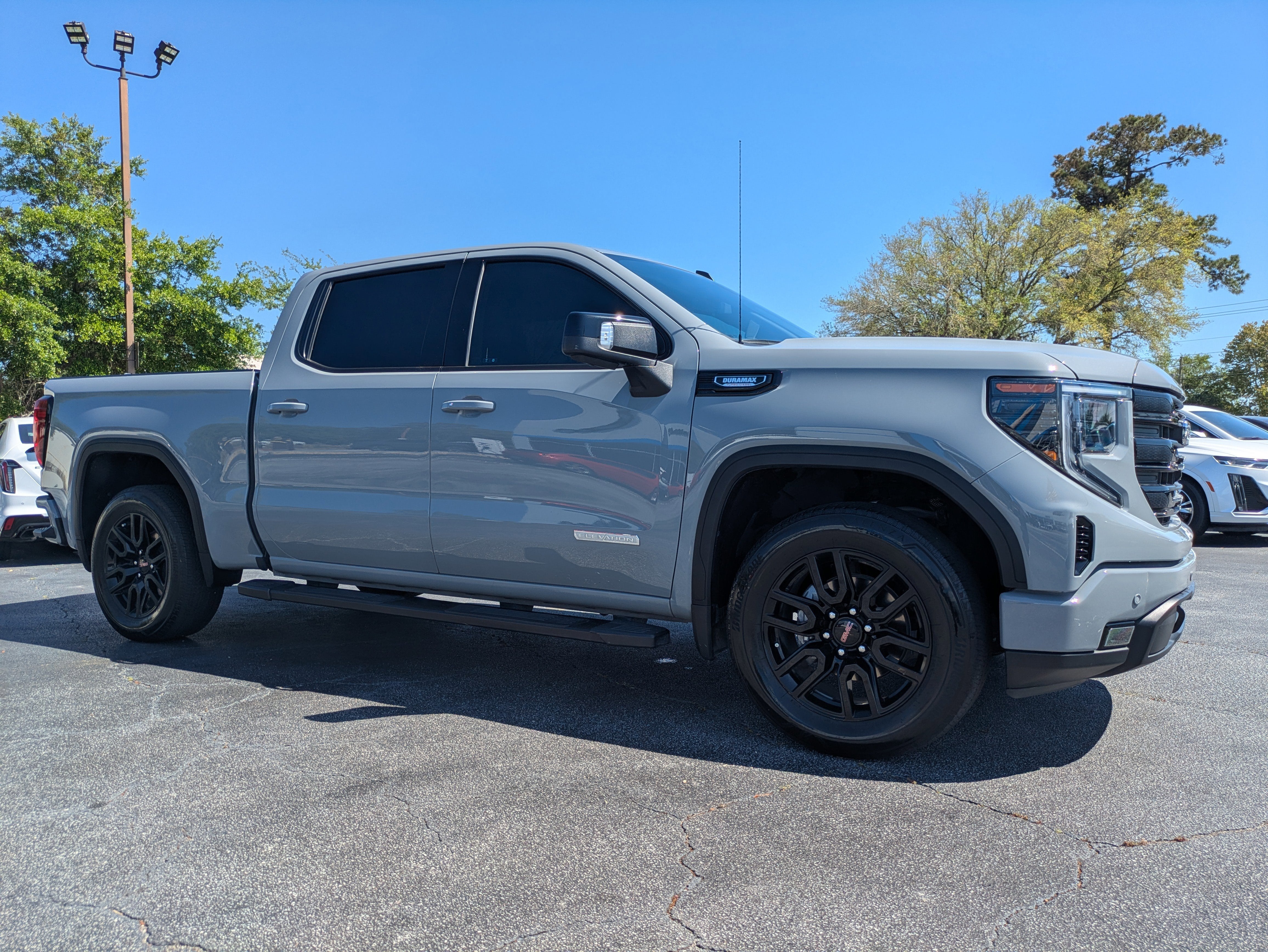Vaden is pleased to offer this Gray 2024 GMC Sierra 1500 Elevation with Black Leather... Beautifully equipped with Cloth Rear Seat w/Storage Package, Elevation Black Package (LPO) (6" Rectangular Black Tubular Assist Steps (LPO), All-Weather Floor Liner (LPO), and Black GMC Emblems (LPO)), Elevation Premium Package (Leather-Appointed Seat Trim and Spray-On Pickup Bedliner w/GMC Logo), High Capacity Suspension Package, Max Trailering Package (Enhanced Cooling Radiator, Heavier Duty Rear Springs, Increased RGAWR, and Integrated Trailer Brake Controller), Preferred Equipment Group 3SB (120-Volt Bed Mounted Power Outlet, 120-Volt Interior Power Outlet, 2 Charge/Data USB Ports, 2 Type-C Charge-Only Rear USB Ports, 6-Speaker Audio System Feature, Auto-Locking Rear Differential, Body Color Header w/Gloss Black Mesh Grille Bars, Color-Keyed Carpeting Floor Covering, Deep-Tinted Glass, Electric Rear-Window Defogger, Front Frame-Mounted Black Recovery Hooks, Front Rubberized-Vinyl Floor Mats, GMC Connected Access Capable, HD Rear Vision Camera, Keyless Open & Start, LED Cargo Area Lighting, Manual Tilt-Wheel & Telescoping Steering Column, OnStar & GMC Connected Services Capable, Power Door Locks, Power Front Windows w/Driver Express Up/Down, Power Front Windows w/Passenger Express Down, Power Rear Windows w/Express Down, Push Button Start, Rear Rubberized-Vinyl Floor Mats, Remote Vehicle Starter System, SiriusXM w/360L, Steering Wheel Audio Controls, Theft Deterrent System (Unauthorized Entry), and Wi-Fi Hotspot Capable), Preferred Package (Adaptive Cruise Control, Hitch View, In-Vehicle Trailering System App, Power Sliding Rear Window w/Rear Defogger, Premium Bose 7-Speaker Sound System, Rear Wheelhouse Liners, and Universal Home Remote), Sierra Safety Plus Package (HD Surround Vision, High Gloss Black Mirror Caps, Perimeter Lighting, Rear Cross Traffic Braking, Rear Pedestrian Detection, Trailer Camera Provisions, Trailer Side Blind Zone Alert, and Ultrasonic Front & Rear Park Assist), Trailering Package (Hitch Guidance), Up-Level Rear Seat w/Storage Package, 10-Speed Automatic, Black Leather, 10-Way Power Driver Seat Adjuster w/Lumbar, 2 Charge/Data USB Ports Inside Center Console, 220 Amp Alternator, 3.42 Rear Axle Ratio, 3.73 Rear Axle Ratio, 4-Way Manual Passenger Seat Adjuster, 4-Wheel Disc Brakes, 6 Speakers, ABS brakes, Air Conditioning, Alloy wheels, AM/FM radio: SiriusXM with 360L, Apple CarPlay/Android Auto, Auto High-beam Headlights, Automatic Emergency Braking, Automatic temperature control, Bed View Camera, Brake assist, Buckle to Drive, Bumpers: body-color, Cloth Seat Trim, Compass, Delay-off headlights, Driver door bin, Driver vanity mirror, Dual front impact airbags, Dual front side impact airbags, Electronic Precision Shift, Electronic Stability Control, Engine Block Heater, Floor-Mounted Center Console, Following Distance Indicator, Forward Collision Alert, Front 40/20/40 Split-Bench Seat, Front anti-roll bar, Front Bucket Seats, Front Center Armrest w/Storage, Front dual zone A/C, Front fog lights, Front Pedestrian Braking, Front reading lights, Front wheel independent suspension, Fully automatic headlights, Genuine wood dashboard insert, Heated door mirrors, Heated Driver & Front Outboard Passenger Seating, Heated front seats, Heated steering wheel, Illuminated entry, IntelliBeam Automatic High Beam On/Off, Lane Keep Assist w/Lane Departure Warning, Low tire pressure warning, Navigation System, Occupant sensing airbag, Outside temperature display, Overhead airbag, Overhead console, Panic alarm, Passenger door bin, Passenger vanity mirror, Power door mirrors, Power driver seat, Power steering, Power windows, Premium audio system: GMC Infotainment System, Radio data system, Radio: Premium GMC Infotainment Audio System, Rear read
