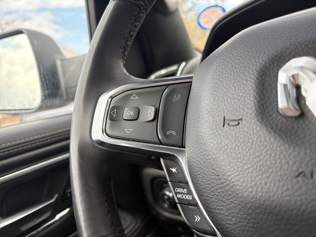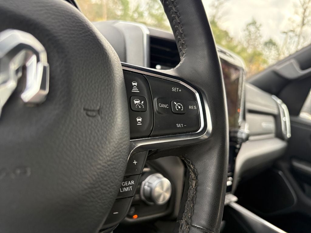 Bluetooth® technology is built into it, keeping your hands on the steering wheel and your focus on the road. The installed navigation system will keep you on the right path. The vehicle's Forward Collision Warning feature alerts drivers to potential front-end collisions. Start this 1/2 ton pickup from inside with remote start. See what's behind you with the back up camera on it. This 1/2 ton pickup is pure luxury with a heated steering wheel. Apple CarPlay: Seamless smartphone integration for the vehicle - stay connected and entertained on the go! This model keeps you comfortable with Auto Climate. This vehicle's Lane Departure Warning keeps you safe by alerting you when you drift from your lane. Good News! This certified CARFAX 1-owner vehicle has only had one owner before you. This Ram 1500 has automated speed control that adjusts to maintain a safe following distance, enhancing highway driving convenience. The leather seats in this vehicle are a must for buyers looking for comfort, durability, and style.